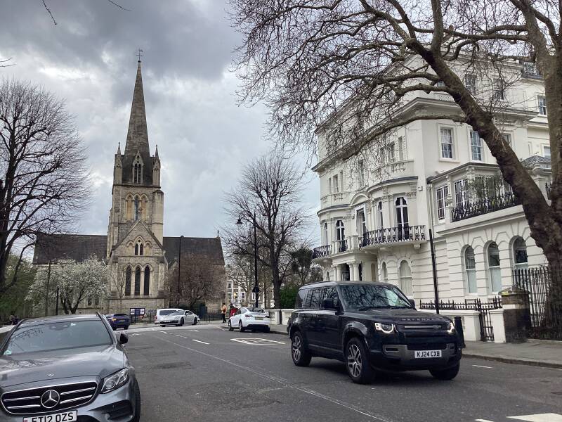 The architect was Thomas Allom who designed Stanley Gardens opposite and it was consecrated on 7th January 1857. The magnificent interior was further embellished in 1879 by Charles Barry Jnr., son of the architect of the Houses of Parliament.